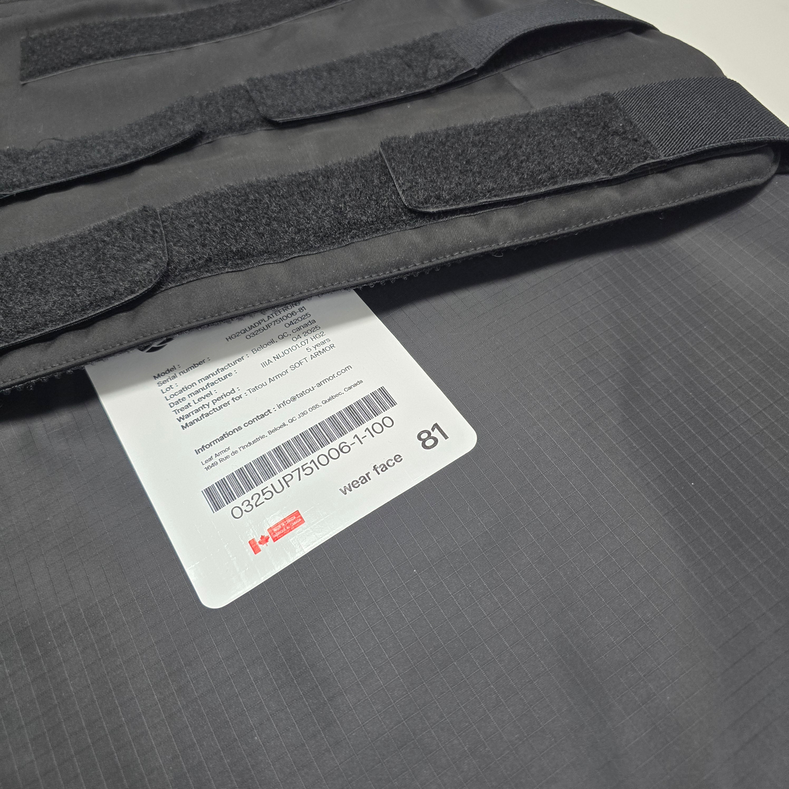 Tatou Armor's IIIA/HG2 soft armor plates are both light and made of top quality materials. The achieve the perfect balance of weight to performance, at 0.99lbs and .25" of thickness. It is tested to stop 9mm 124grain at 1470ft/s (448m/s) and .44mag 240 grain at 1430ft/s (436m/s). This allows it to be categorized at NIJ STD-0101.06 Level IIIA and NIJ STD-0101.07 (Draft) HG2.